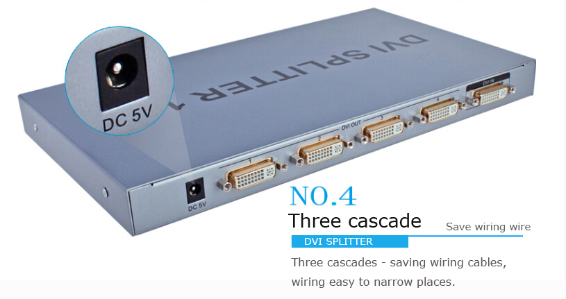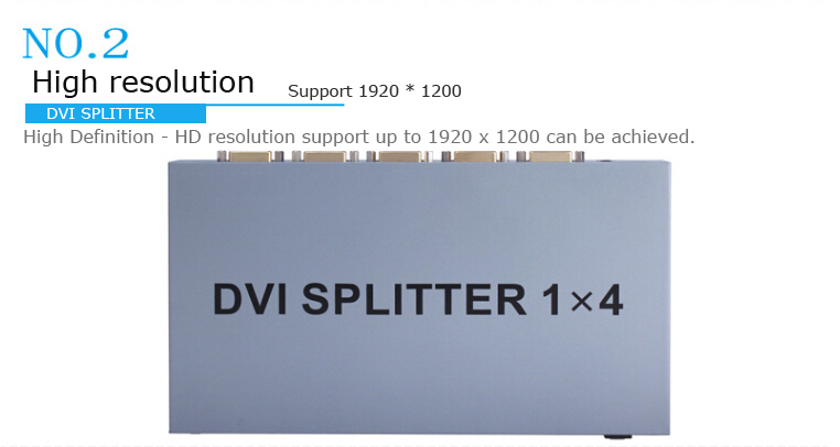DT-7024 DVI splitter is the perfect solution for anyone who needs to send one video signal to 4 displays at the same time. DTECH DT-7024 1 TO 4 DVI splitter Feature: 1. Support DVI-D 2. High bandwidth, high transfer rate, high resolution, high power output, low noise, low consumption. 3. Support cascade 4. Support 1080P, 1920x1200@60Hz 5. Exclusive circuit design, supports long distance transfer.